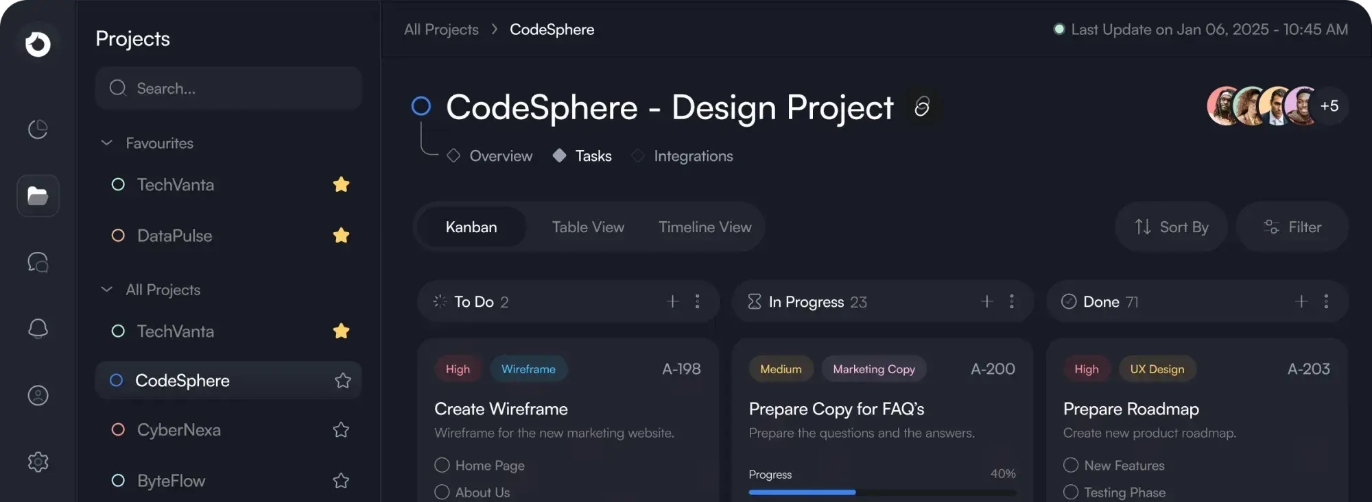 Find anything instantly — tasks, files, messages — thanks to blazing-fast global search and filters.